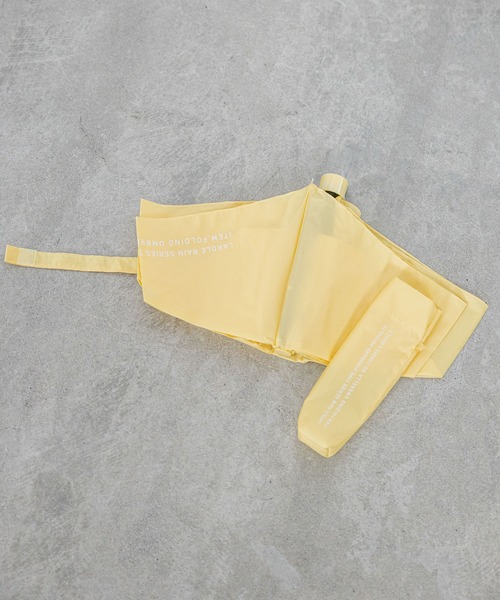 雨の日が楽しくなる、ラコレのレインシリーズ。 スタンダードな折り畳み傘。 ハンドル部分にロゴプリントを施し、本体は無地のシンプルなデザインです。 ユニセックスでお使いいただけます。