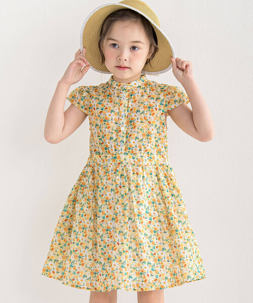 フランスのDEVEAUX社より大人っぽさのあるグラフィックプリントのファブリックをセレクト。 グリーン系は深みのあるモスグリーン地にヘリンボン柄。イエロー系はオフホワイト地にイエローとオレンジの花柄。 きちんと感もありつつラフにも着こなせるバンドカラーの襟もとのワンピースです。 袖はコンパクトなキャップスリーブで女の子らしいシルエット。 薄手のコットン素材で軽やかな雰囲気に着こなせます。 同じ素材を使用したブラウス(1106-63131)や女の子Tシャツ(1115-63401)・男の子Tシャツ(1115-63412)でリンクコーデも楽しめます。 ※100~160cmのみ両脇ポケットあり ※柄の出方は生地の裁断により一点一点異なります。 【DEVEAUX】 DEVEAUX(デヴォー)はフランス国内第3位の大手テキスタイルメーカー。 1830年創業の伝統ある老舗でありながら常にトレンドに沿った素材は、世界中のメゾンから注目されています。 【2024年春夏 シーズンテーマ】 -私の楽しい瞬間- 暖かくなってアクティブでハッピーな気分。 そんな明るいムードに寄りそってくれる、機能性や着心地を備えたお洋服。 好きなことをしている瞬間の楽しい気持ちを詰め込んだコレクション。 【BeBe(べべ)】 ”LOVE MODERN” 少しおませで、生意気なヨーロピアンカジュアルの提案。 時代性・流行性をとらえ、ベーシックでもワンポイントを施した遊び心、楽しさを盛り込んでいます。 シンプルだけど、こだわりのあるオリジナリティーを重視しています。 2024年 春夏 女の子アイテム