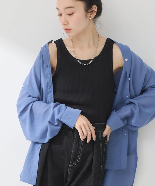 シンプルで着回しやすいベーシックデザインのタンクトップ。深めに開いたネックやアームもヘルシーなヌケ感をプラスしてくれます。伸縮性のあるリブ素材で心地よくフィットし、スタイリングもノンストレス。ワードローブに色違いで揃えるのもおすすめです。透け感[無し]※オフホワイトやや有り 裏地[無し] 伸縮性[有り] 光沢感[無し] 生地の厚さ[普通] 付属品[無し] ポケット[無し]●製品寸法:S:バスト34cm 着丈57cm 肩幅27cm 裾幅34cmM:バスト37cm 着丈59cm 肩幅28cm 裾幅37cm備考: