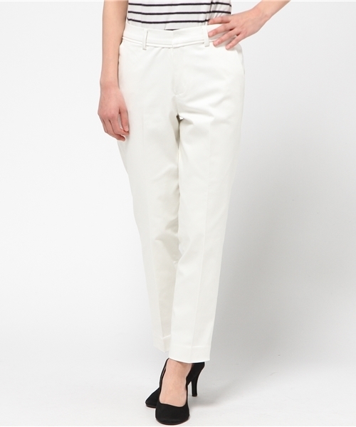 足が一番きれいに見える長さの9分丈パンツ。すっきりとしたフォルムに、ヒップのポケット配置が小尻効果も。テーパードタイプなので下半身がすらりと見え、美脚が叶う一枚です。トップスは、イン・アウトどちらも決まるウエスト回り。オンオフ使えるパンツは、必ずデイリーで持っておきたいアイテムです。 ※店頭・外での撮影画像は、光の当たり具合で色味が違って見える場合があります。商品の色味は、スタジオ撮影の画像をご参照ください。 スタッフ身長:155cm