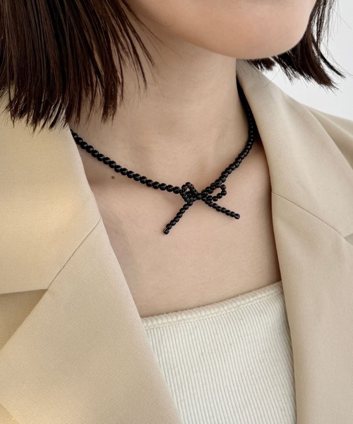 ーーー 【デザイン】 パール×リボンの組み合わせがいまっぽく トレンド感あるデザインのネックレス。 大きすぎないリボンモチーフが甘すぎず使いやすい♪ ガーリーなスタイルからカジュアルなスタイルまで 幅広く活躍するアイテムです。 ーーー ※屋外の光や照明の当たり具合で、実際の商品と画像の色味に違いが発生する場合がございます。 ※パールはイミテーションパールを使用しています。