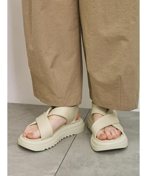 アッパー部分のねじりデザインがさりげないアクセントになるサンダル。ソールは厚底になっており、スタイルアップ効果を演出します。フィット感のあるゴム仕様のストラップもポイント◎カジュアルやきれいめな着こなしにも合わせやすいアイテムです。※商品画像は、撮影環境やお客様のご利用のPC・スマートフォンのモニター環境などにより実物と色味に差異がある場合がございます。