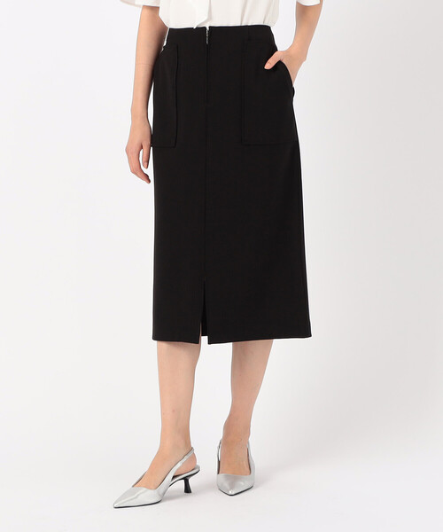\通勤・オフィスコーデにおすすめ/ 《デザイン》 ストレッチ性があるツイル素材を使用したタイトスカートです。 ウエスト部分の前は見返しでスッキリと、 後ろはゴムを通し、リラックス感のある穿き心地に仕上げました。 前開きのファスナーと大きめなパッチポケットがデザインのアクセント。 普段使いしやすいカジュアルな印象を作ります。 前裾にはデザイン的にスリットを入れ、 機能的にも歩きやすさを出し、シャープな印象に仕上げています。 ビジネスにもお出かけにも使えるきれいめコーデがつくれます。 《素材》 程良いハリ感がありつつ、 ストレッチ性にも優れたポリエステルのドライツイル素材です。 ドライタッチで表面感がさらっとしており肌離れがよく、 汗ばむ季節にも快適にお召しいただける生地です。 …………………… 透け感:なし 厚さ:中肉 伸縮性:あり 光沢感:なし 裏地:なし ポケット:あり 洗濯方法:洗濯機洗い可 …………………… ※画像の商品はサンプルとなりますので実際の商品と仕様、加工、サイズが若干異なる場合がございます。 ※こちらの商品はFIVE FOXes独自の採寸方法となっています。 本サイトのサイズガイドと採寸方法が異なる場合がありますのでご了承ください。