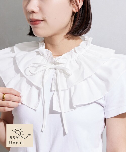 ●大ぶりのフリルが可愛らしいネックカバーです。●UVカット付きなので紫外線対策になります◎●ベーシックカラーでコーディネートに取り入れやすいです◎