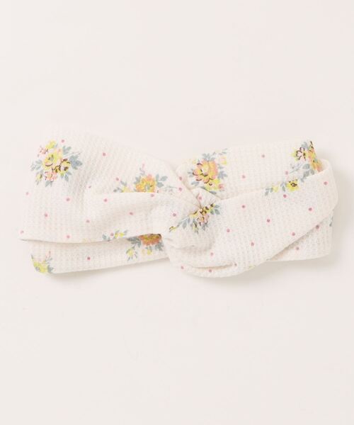 ポリエステル混で型崩れしにくく、イージーケア◎ブーケ柄×ドットが可愛らしいテキスタイル。 ヘアバンドは、センターをねじったデザインでルームコーデのアクセントに。 お風呂上がりや洗顔時にもおすすめな便利アイテム。 ギフトにも◎ ヘアバンド 10×24cm