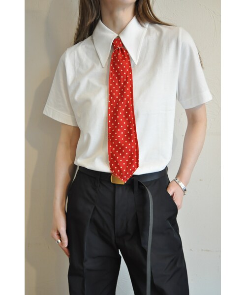 70年代風のレトロな襟がポイントになった、日本製の上質なカットソー素材を使用したトップス。 小さくもなく大きすぎる事もないサイズ感。 考えられたシルエットで、絶妙なバランスの身頃と袖になっています。 襟が特徴的なので流行のネクタイをしたりしても◎ 後ろジップで着やすい仕様です。 *ネクタイは付属しておりません。