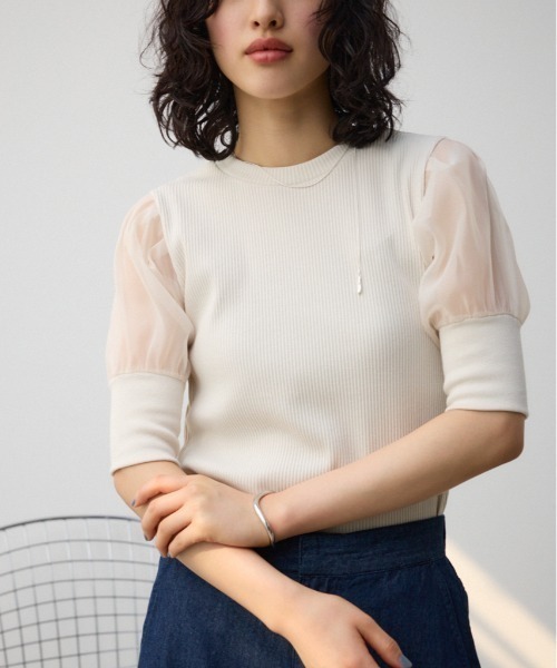 ■商品(デザイン)ポイント: トレンドのパフスリーブデザインをシアー素材で施したトップスです。 ■商品ディティール :袖のパフから袖口に掛けて締まるロングリブデザインがメリハリを演出し、すっきりとした印象に仕上げてくれます。 袖のシアーが女性らしさを引き立たせてくれます。 ■スタイリング :一枚着はもちろん、キャミワンピースのインナーにも着用出来、普段のスタイリングに取り入れるだけでぐっとトレンドライクな印象に仕上がります。 ■透け感:なし ■光沢感:なし ■伸縮性:あり ■裏 地:なし ▼商品のお気に入り登録お気に入りアイテムの値下げ・再入荷・在庫1点などの通知を受け取ることができます。 ▼ブランドのお気に入り登録新商品や再入荷、セール、クーポン配布などお得な情報を受け取ることができます。