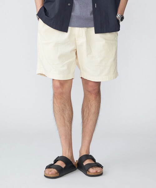 サマーコーデュロイ素材を使用したショートパンツ【素材特性】ベーシックな14ウェールコットンコーデュロイに製品染め加工を施し、ナチュラルな風合いに仕上げております。コーデュロイと聞くと秋冬の素材と考える方も多いと思いますが、一般的なコーデュロイに比べサマーコーデュロイは繊維や生地の厚み、起毛感(毛足が短く、薄い)が全く異なります。薄手で通気性も良く、真夏でも過ごしやすい快適な素材です。【デザイン/スタイリング】裾巾広め、股下短めにパターンを設定したことで、サーフスタイルやトレンド感あるコーディネート等幅広いスタイリングに対応できるアイテム。盛夏に適した爽やかなカラーで展開しております。--------------------------------------------生地の厚み:中間伸縮性:無透け感:無水洗い:可--------------------------------------------【スタッフ着用コメント】《SHIPSスタッフ1》年齢:30代前半/身長:171cm/ウエスト:78cm/体重:58kg/体型:やせ型/肩幅:いかり肩/普段サイズ:M/着用サイズ:Lウエスト:調整していただける様にゴムが入っている為ジャストサイズです。もも周り:程よくゆとりがございます。レングス:膝上ぐらいの長さです。コメント:サマーコーデュロイを使用した夏にぴったりなハーフパンツでございます。--------------------------------------------【注意事項】※末永く愛用頂く為に、アテンションタグ・洗濯ネームを必ずご確認の上、着用又はお取り扱いください。※撮影環境による光の当たり具合やパソコン・スマートフォンなどの閲覧環境によって、実際の色味と異なって見える場合があります。 商品の色味は商品単体で撮影した画像をご参照ください。※画像の商品はサンプルです。 実際の商品と仕様、加工、サイズが若干異なる場合がございます。