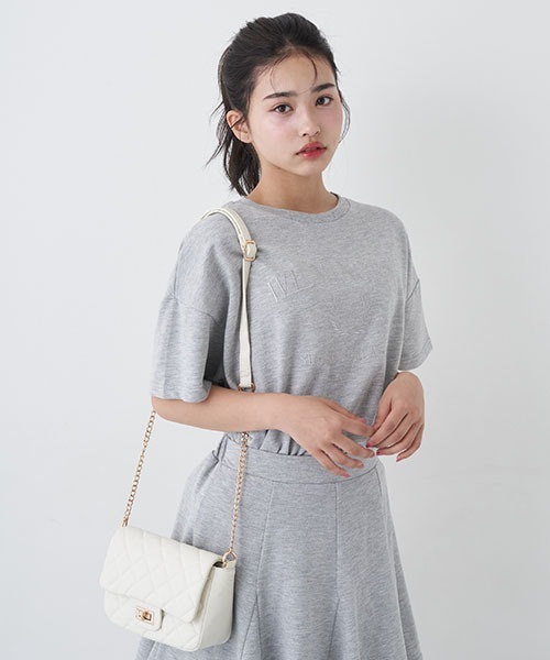 合皮のキルティング生地で仕上げた大人可愛いショルダーバッグです。小振りなサイズながらもマチがあるので見た目以上に容量たっぷり。肩紐はチェーンも加えて、上品に仕上げました。お好みの長さに調節できるのも便利なポイントです。≪重さ≫F/約291g#中学生 #小学生 #高学年 #子供服 #ティーン #ガールズ #通学 #学校 #おでかけ #友達 #おそろい #テーマパーク #ダンス #遊び #塾 #習い事 #韓国 #推し活 #ライブ #コンサート #ラブトキ