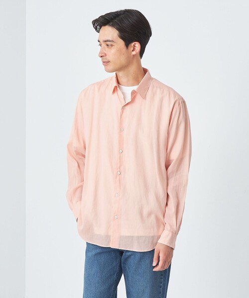 春夏らしい季節感のあるリラックスシャツ ■デザイン ややゆとりのあるシルエットのレギュラーカラーシャツです。 シアー感のある春夏らしいリラックスした雰囲気の羽織アイテム。 さわやかな淡いカラーバリエーションも魅力的です。 ■素材 ラミー×セルロース素材を使用。 ソフトで透け感のある軽やかな生地です。 ■コーディネート Tシャツ上の羽織アイテムとして、上品さを演出できる一枚。 羽織としてはもちろん、肩掛けや腰巻きなどスタイリングのアクセントにも活躍します。 ボトムスにはオフホワイトやライトグレー、ライトブルーデニムなど淡いカラー合わせがおすすめ。 素材感を活かして、スリッポンやレザーサンダルなど軽快なシューズと合わせると、バランスよくまとまります。 ============================ 裏地:なし 透け感:あり 伸縮:なし 光沢感:なし ============================ 【注意事項】 ※商品を使用前に、タグ等に記載されている「取り扱い上の注意書き」、「洗濯表示」を必ずご確認ください。 ※商品画像は、光の当たり具合やパソコンなどの閲覧環境により、実際の色味と異なって見える場合がございます。あらかじめご了承ください。 ※商品の色味の目安は、商品単体の画像をご参照ください。 店舗へお問い合わせの際は、全国のgreen label relaxing各店舗まで下記の品名/品番をお申し付けください。 品名:ラミーセルロース リラックス REG 品番:31111082442