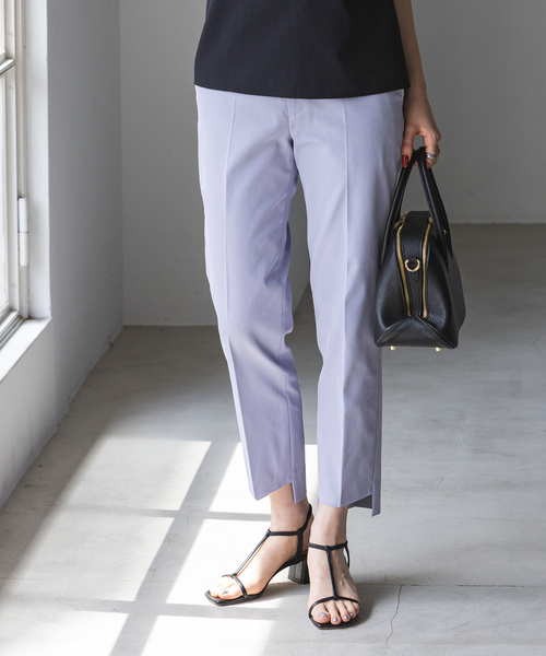 ◆ロングセラー!人気の”ステップヘムパンツ”が新色を加えて再入荷! ※商品番号23030240103010・23030240103120・24030240105020の追加商品です。 ※若干の仕様変更がある場合もございます。 ※他カラーは商品番号24030240105020にてお取り扱い中です。 ※レビュー内容には品番の異なる同商品のレビューが含まれており、現在展開外のカラー・サイズの記載がある場合がございます。 裾の段差(ステップ)がポイントのパンツ。 足首が少し見える短めの着丈で女性らしい抜け感と、モードな印象をプラスしたデザインが人気の秘訣。 ひざ下が美しく見えるシルエットや太もも周りまで細部にわたってブラッシュアップし、とことん美脚ラインにこだわりました。 適度な固さとリネン混の肌離れがいいさらっとした着心地が魅力。夏にかけてぴったりな素材感です。 ベルト巾を太くすることでウエスト位置が上がり、適度にラフさのある今っぽいバランスを演出してくれるだけではなく、スタイルアップ効果も期待できます◎。 さらに、手洗い可能、透け防止効果、ストレッチ性抜群の素材を採用し、機能性も網羅しています。 美脚シルエット&ストレスフリーな着心地を叶えてくれる、NOBLE自慢のパンツを是非お試しください! ★商品番号22030240101010に頂いたお声を一部ご紹介いたします。 ・ピンクを購入し、素材や履き心地が気に入り売り切れる前に!と黒も購入。1日履いてもシワも気にならずストレスフリーなパンツです。 ・何回履いても特に目立った痛みはなくお洗濯もできるので重宝しています。ステップヘムがやはりプチプラとは違うオシャレ感がありました。 形が凝っているものは様にならないことが多いのですが、履きこなすことができてとても気に入りました。ホワイトの購入も検討しています! ・春になったらカラーパンツが履きたいと思っていたところ、こちらのピンクが目にとまり購入しました。 色味が何とも絶妙で、膨張しないローズピンクで気に入りました!普段は9号又は11号を着用していますが、今回は38サイズを注文して正解でした。 ********************** 透け感: なし(ホワイト以外)・あり(ホワイト) 裏地: なし 伸縮性: ややあり 光沢感: なし 生地の厚さ: 普通 ********************** 【スタッフ着用コメント】 《スタッフK》 身長:158m/普段サイズ:M/着用サイズ: 38 サイズ感:腰のラインに沿うすっきりしたサイズ 素材感:やや光沢感のある、キレイめな表情の素材。リネン混のさらっとした肌当たり。 着心地:パウダータッチなさらさら肌触りと高いストレッチ性で着心地抜群です ********************* ※取り扱いについては、商品についている品質表示でご確認ください。 ※こちらの商品は、NOBLEでの取り扱いになります。 直接店舗へお問い合わせの際はNOBLE店舗へお願い致します。 ※照明の関係により、実際よりも色味が違って見える場合があります。 またパソコン・スマートフォンなどの環境により、若干製品と画像のカラーが異なる場合もございます。予めご了承ください。 ※商品の色味は、商品アップ画像をご参照ください。 ブラック着用スタッフ身長:158cm 着用サイズ:36 ホワイトA着用スタッフ身長:164cm 着用サイズ:36 パープルB着用スタッフ身長:160cm 着用サイズ:36 モデルサイズ:H161 着用サイズ:38 本体:手洗い可能