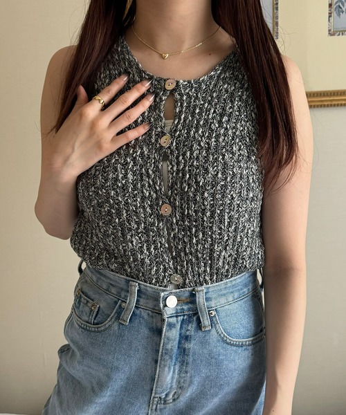 【JUNOAH / ジュノア】 前後2WAYで着ていただけるひと癖ニットタンク。 ■detail オープンデザインがポイントのヘルシーな肌見せ叶うニットタンク。 2WAY仕様なので前ボタンでインナーとの合わせを楽しんだり、 後ろボタンで抜け感のあるコーディネートにしたり◎ また、フィット感のあるニット素材で女性らしい印象に。 夏らしさ溢れるスタイリングになるこなれアイテムになります! ■fabric 肌心地やさしく、軽めのニット素材を使用しております。 ………………… 透け感:ややあり 厚さ:普通 伸縮性:あり 裏地:なし シワ:なりにくい 推奨シーズン:5月~9月 ※アウターによって長いシーズン着用いただけます。 ※関東の平均気温を目安に推奨シーズンを記載しております。 ………………… ※詳しいお手入れ方法は商品タグをご参照ください。 【※必ずご確認の上、ご検討ください※】 ※通販の特性上、到着時には畳みシワが必ずございますのでご了承ください。 ※当ブランドではデザイナーの感性を大切にし、デザイン性を重視した商品を提案しております。 画一的な商品ではなく、最新の生地や仕様で個性に焦点を合わせて展開いたしますのでお気軽にお試しください。 ※返品・交換規定は当サイトのヘルプをご参照ください。 ★お買いものをよりお楽しみいただく為に!★ ▼商品のお気に入り登録 お気に入りアイテムの完売カラーの再入荷通知や、ラスト1点の通知、 セールの通知も受け取ることができます。 ▼ブランドのお気に入り登録 新商品や再入荷など、クーポン配布などのお得な情報を受け取ることができます。 ※商品画像は撮影時の光や角度により、実物の色味と異なって見える場合がございます。 ※撮影はサンプル品を使用しており、表示のサイズ感も実物とは若干異なる場合もございますので、 予めご了承ください。 ※生産時期により色・素材・サイズ感など多少異なる場合がございます。予めご了承ください。