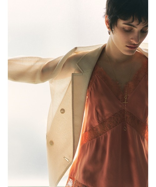 【サンドウォッシュシルクキャミの美しい質感にセンシュアルな魅力が上昇/ウォッシャブル】【Design/Styling】スウェードのような柔らかくしなやかなタッチのサンドウォッシュシルクを贅沢に使用したキャミソール。パウダリーな手触りとシルクならではの上質なドレープが女性らしさを高めてくれます。ヘムラインには繊細なレースを組み合わせたり、サイドには飾りボタンをあしらって、さらにリッチに。アメスリタンクトップを合わせて一枚着にしたり、ジャケットなど羽織りのインナーにしたりと、オールシーズン楽しめます。ご家庭での手洗いが可能なイージーケアも◎。ストラップはサイズの微調整が可能なアジャスターを付きです。柔らかなIVR、洒落た色合いのORG、色っぽいBLKの3色展開です。※照明の関係により、実際よりも色味が違って見える場合があります。またパソコン・スマートフォンなどの環境により、若干製品と画像のカラーが異なる場合もございます。予めご了承ください。商品の色味は、商品単品画像をご参照下さい。 ※商品画像はサンプルのため、色味やサイズ等の仕様に変更がある場合がございますので、予めご了承ください。