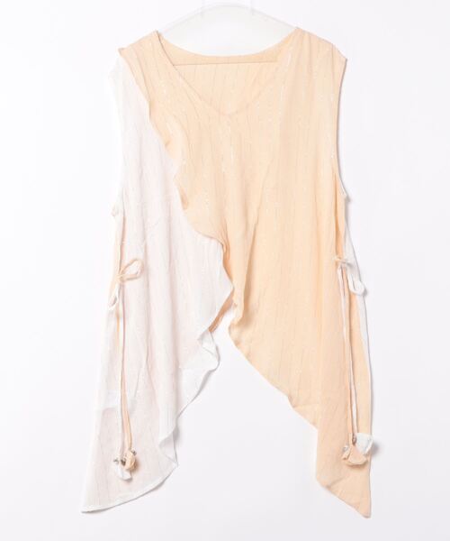 色鮮やかなインドの民族衣装・サリーの色彩から着想を得たカラーリング。前後どちらを前にしても着られる2WAYタンクトップ。ウエストの紐は前か後ろで結んだり、結ばずそのままにして生地の揺れ感を楽しむのも◎さらりとしたレーヨン生地にはキラキラとしたラメ糸入り。他には無い個性的な夏のエスニックスタイルに◎※こちらの商品は1点1点職人による手作りとなります。その為、形や色合いなど若干異なる場合がございます。あらかじめご了承ください。Amina Collection Co.,LTD.