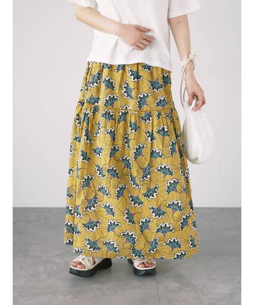 華やかなアフリカン柄のスカート。 ウエスト部分はゴムが使用され、ストリングがついているのでサイズ調整も可能です◎ 裏地が付いているため、透けることなく涼しく着られます。 Tシャツなどのカジュアルなアイテムとも相性が良く、普段使いにもピッタリ。 ※商品画像は、撮影環境やお客様のご利用のPC・スマートフォンのモニター環境などにより実物と色味に差異がある場合がございます。 【その他採寸】 F ウエスト:[ゴム仕様]66cm