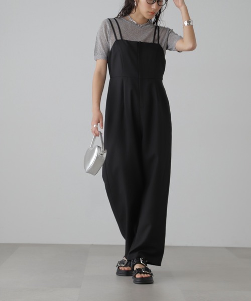 [fabric&Design]清涼感のあるカラッとしたタッチの麻調合繊素材。 ダブルストラップがポイントのキャミコンビネゾンです。 リラクシーな程よいゆとりをもたせつつも、ウエスト部分の切り替えで少しだけシェイプさせたシルエットでスタイルアップできます。 フロントファスナー付きで着脱もスムーズです。 肩ストラップは調節可能です。サイドポケット付き。 パンツ部分のみ裏地付きで透けが気になりません。 [Styling] インナーにシアーインナーやTシャツ、ノースリーブ、タンクトップと合わせてロングシーズン着まわせます。 トレンドのリボンカーデ合わせが今年らしくておすすめ◎ ■透け感:なし ■生地の厚さ:普通 ■裏地:あり ■伸縮性:なし ■光沢:なし ■シルエット:スタンダード model:骨格ストレート --------------------------------------------------- ◆商品のお気に入り登録◆ お気に入りアイテムの値下げ・再入荷・在庫1点などの通知を受け取ることができます。 ◆ブランドのお気に入り登録◆ 新商品や再入荷、セール、クーポン配布などお得な情報を受け取ることができます。 ---------------------------------------------------