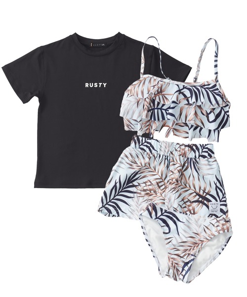 RUSTY/ラスティ 子供用 タンキニ ラッシュT付き 4点セット 水陸両用 吸汗速乾 UVカット アロハ柄 水着
