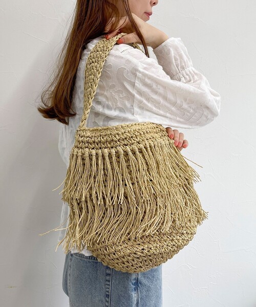 ◇fredy emue◇ 【2024 SS】 シーズンムードが高まる!フリンジが華やかなワンハンドルバッグ ●point ・大ぶりなフリンジがアクセントのワンハンドルバッグです ・ペーパー素材が爽やかで涼し気な印象に! ・フリンジの存在感はカジュアルでありながら、ボヘミアンなスタイルを引き立て、ファッションアイテムとして際立ち、華やかな雰囲気に仕上げてくれます ・円柱の大き目のマチ幅で荷物がしっかり入るのも嬉しいポイント!内ポケット付きで収納力も◎ ・バッグの口は巾着仕様になっているので中身が見えず安心です ・パンツやワンピースなど幅広いシーンのコーデにマッチし、春夏コーデが格上げされるアイテムです 《収納の目安》 ・500mlペットボトル ・長財布 ・ポーチ ・スマートフォン ・タオルハンカチ ●お取扱い上のご注意● *アテンションタグを必ずご確認の上、着用又はお取り扱い下さい。 *店頭及び屋外での撮影画像は、光の当たり具合で色味が違って見える場合があります。商品の色味は、スタジオ撮影の画像をご参照下さい。 *商品画像に関しては出来る限り忠実に表示出来るよう努めておりますが、お客様がご利用のモニターの設定及び特性により、実際の商品と比較し色味に若干の誤差が生じる場合があります。 *こちらは天然素材を使用しているため、風合いやサイズ等が1点1点若干異なります。予めご了承ください。 ◇商品のお気に入り登録◇ 【お気に入りに登録 ♡マークをクリック】を是非ご活用ください! 再入荷の通知や、ラスト1点の通知、セールの通知がいち早く届きます。 ◇ブランドのお気に入り登録◇ 新商品や再入荷など、いち早くブランドのお得情報が届きます。