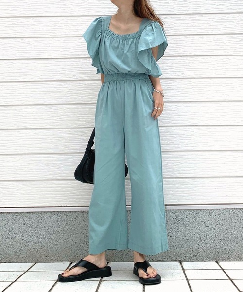 華やかに広がるラッフルスリーブがフェミニンな表情を見せてくれるオールインワンです。 ウエストシャーリングできゅっと絞ったメリハリのあるシルエットが美しいデザイン。 綿麻ブレンドの軽やかな生地も心地よいアイテムです。 《インフォメーション》 ◆商品のお気に入り登録 完売していても再入荷時に再入荷通知を受け取ることができますので、是非ご登録ください。 ◆ブランドのお気に入り登録 新商品や再入荷などの情報を受け取ることができますので、是非ご登録ください。
