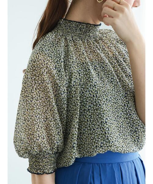 程よいシアー感が涼し気なシフォン素材の柄アソートシャーリングブラウス。人気のランダムなドット柄と小花柄の2柄アソート展開です。衿ぐりと袖口のシャーリングによるフリルでかわいらしさをプラスしています。スカートはもちろん、パンツと合わせたコーディネートもおすすめです。※商品画像は、撮影環境やお客様のご利用のPC・スマートフォンのモニター環境などにより実物と色味に差異がある場合がございます。