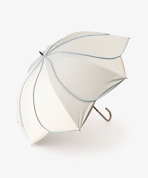 花びらのようなパイピングデザインがかわいらしい、晴雨兼用の長傘です。 紫外線遮蔽率、遮光率ともに99.9%以上を誇る1級遮光日傘。生地の裏面にポリウレタン樹脂でコーティング加工をしており、生地の目をしっかりと埋めるので、UVカット、遮光、耐水性に優れています。日差しが厳しい時期のお出かけに重宝するアイテム。カラーはパープル、ホワイト、ネイビーの3色展開で、好みやお手持ちの洋服の色合いに合わせてお選びいただけます。開閉時に指や爪を痛めないよう、ストッパー部分にセーフガード機能が付いているのもポイント。 シンプルでオンオフ問わずさまざまなコーディネイトに合わせやすいのが魅力です。 *紫外線遮蔽率/99.9%以上 *遮光率/99.9%以上 全長68cm/親骨50cm/直径84cm/重さ275g