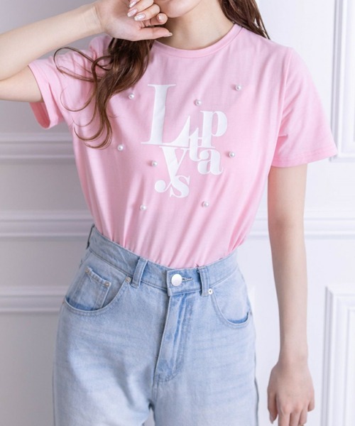 大人可愛い♪ロゴパール半袖Tシャツ【デザイン】フロント部分のロゴプリントでワンポイントに着こなせます♪パールが付いているので、カジュアルすぎず大人上品なイメージに!きれいめコーデがお好きな方におすすめのTシャツです!【素材感】着心地の軽いポリエステル素材伸縮性:なし/透け感:オフホワイト,ピンクのみ若干あり/ 裏地:なし手洗いによる洗濯可 / ウェットクリーニング可【コーディネート】フレアスカートやミニスカートとの合わせで甘めフェミニンなコーディネートに仕上がります!デニム合わせで大人カジュアルにも◎【※お取り扱い上のご注意】1:モニター環境等により実際の商品と多少色味が異なって表示される場合がございます。予めご了承下さい。2:屋外で撮影された商品は、天候により多少実際のカラーと異なる場合があります。商品のカラーはトルソー(マネキン)の商品画像をご参照ください。3:濃い色の商品は、お洗濯や摩擦等による移染にご注意ください。4:末永くご愛用頂く為に、アテンションタグ・洗濯ネームを必ずご確認の上、着用又はお取り扱い下さい。5:生産時期により、色、サイズ、デザイン、素材の質感が多少が異なる場合がございます。あらかじめ御了承下さいませ。