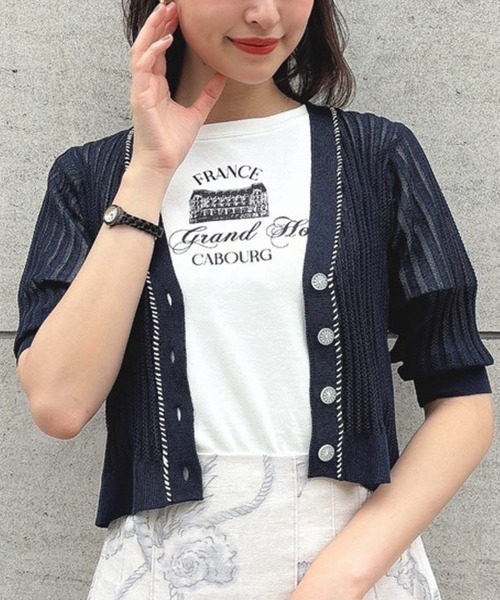 ■デザインポイント配色のハンドステッチがアクセントになったサマーニットカーディガン。繊細な透かし編みがヴィンテージライクな雰囲気に…♡フロントにあしらわれた釦もヴィンテージの釦から型を起こしたこだわりのポイントです。夏にも着やすい爽やかなカラーリングでご用意いたしました。■オススメスタイリングワンピースの羽織にオススメの一品です。程よい透け感があるのでキャミワンピースと合わせて透け感のあるヘルシーな着こなしもトレンドライクに仕上がります。※アイロンは当て布を使用してください。▼商品のお気に入り登録▼気になるアイテムの♡をクリックしてお気に入り登録すると残り1点の通知、完売カラーアイテム再入荷の通知、お得な通知が届きます。▼ショップお気に入り登録▼ショップからの新作商品やお得なイベント情報など、いち早くブランドからの情報を受け取ることができます。▼an another angelus/アンアナザーアンジェラス『パリの裏通りにひっそりとたたずむ小さな隠れ家。その扉を開けると…』 懐かしくも新しいレトロ感をレディライクに表現し、大人の女性のワードローブを提案。50年代パリのメゾンからインスパイアされたモードなシルエットやクチュール感のあるディティールにこだわった「Mode of classic」のアイテムも展開中です。▼Fint/フィント50~70年代のクラシカルなヴィンテージデザインに トレンド感をプラスしたレトロ&ガーリースタイルをお届け。 古着屋で一点ものを見つけるような【ときめき】を感じられるブランドです。70s~90sストリートからイメージしたアイテムにレトロ&ガーリー要素をMIXしたトレンド感あるカジュアルアイテムが揃う「Pink Label」のアイテムも展開中!