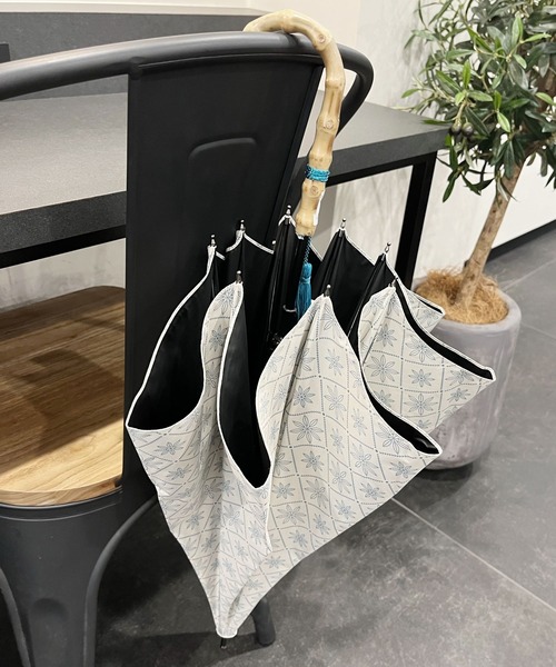 フラワータイル柄のオリジナルデザインの日傘。柄物ですが、落ち着いたカラーでどんなコーディネートの日でも使いやすい〇鮮やかなタッセルと木の持ち手がポイントになっています。見た目にも涼しく、毎日持ちたいこれからの季節に大活躍のアイテムです。