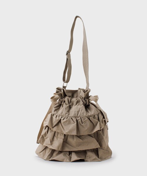 人気の2WAYドロストリボンショルダーをティアードデザインでアップデート・上品な光沢感のあるナイロン素材を使用・表側の3段フリルティアードがトレンド感のあるデザイン・持ち手部分は長さ調節が可能な2WAY仕様・A4サイズも対応可能な収納力・ポケット付きで細かな荷物の仕分けに便利※ポケット数:2(うち、内側ポケット数:1)【デザイン】トレンドのドロストデザインのワンショルダーバッグをティアードデザインでアップデート。3段のフリルティアードがポイントで、シンプルなスタイリングのアクセントとしてもおすすめです。ショルダー部分は紐の長さを調整が可能な2WAY仕様で、肩掛けでも斜め掛けでもご使用いただけます。サイドの太めリボンをぎゅっと引いて使う巾着タイプの仕様で、スタイリングに合わせてしぼりの強弱でギャザーデザインの変化を楽しめます。ハリ感がありながらも柔らかい素材なので、体に沿って持ちやすいデザインが魅力です。内と外に1つずつポケットが付いているので、細かい荷物の仕分けや、さっとすぐに取り出したい物の収納に便利です■2WAY■肩掛け可能■ななめ掛け可能※照明の関係により、実際よりも色味が違って見える場合があります。また、パソコン・スマートフォンなどの環境により、若干製品と画像のカラーが異なる場合もございます。店舗へのお問い合わせ商品番号:C71-18107●製品寸法:00:高さ43cm 幅(上部)39cm 幅(下部)35cm マチ7cm ショルダー対応サイズ47.5~88.5cm備考:重量:約230g