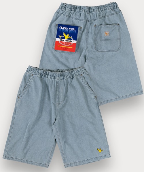 【(What it isNt) ART BY MARK GONZALES/ワットイットイズント マークゴンザレス】ピスネーム付デニムバギーショーツ/ウエストシャーリング