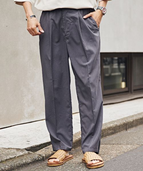 リネンの素材感を表現したポリエステル素材"テックリネン"を使ったイージーパンツが今年も登場!肌離れがいいリネンライクな質感で、リネンよりもシワになりにくいイージーケア素材。洗濯機洗いが可能な上、乾きやすく機能性の高い夏定番の生地です。涼しげなメランジの見た目とドライな風合いが特徴の春夏定番素材で、ストレッチポリエステルを付与することで、ポリウレタン繊維を使用せず、重さを出さずにストレッチを表現しております。今シーズンはベルトループのあるスラックス型のワンタックパンツで、内側にスピンドルのイージーパンツ仕様にアップデート。デザインは、オーバル(やや楕円調)シルエットで、ヒップと腿まわりは程よくゆとりがありつつ、裾にかけてテーパードさせたデザインです。ワイド過ぎないすっきりとしたシルエットなのでクリーンな印象になり、きれい目にもカジュアルスタイルにも使いやすい一枚。継続色のブラック、ベージュに新色のグレー、ブラウンを加えた4色展開です。※その他の” TECH-LINEN”のアイテムはこちらです!品番:24051464601010商品名:"イージーケア" TECH-LINEN 半袖CPOシャツ**********************透け感:なし裏地:なし伸縮性:なし光沢感:なし生地の厚さ:やや薄め**********************【スタッフ着用コメント】《スタッフH》身長:170cm/体重:60kg/体型:中肉中背/普段サイズ:M/着用サイズ:Lサイズ感:ややゆとりがあるサイズ感です。素材感:麻よりもザラつきがない素材感です。着心地:軽くて通気性も良いので、快適に履くことができます。**********************《画像についてのご注意》※照明の関係により、実際よりも色味が違って見える場合があります。またパソコン・スマートフォンなどの環境により、若干製品と画像のカラーが異なる場合もございます。※商品の色味は、商品アップ画像をご参照ください。《商品のお気に入り登録について》「カートに入れる」または「予約する」右側のハートマークを押していただくと、再入荷、残り1点、セールなどの通知を受け取ることが出来ます。本体:洗濯機洗い(弱)