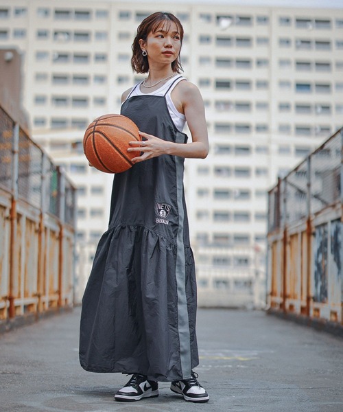 【ポイント】 ・ナイロン素材の今年らしいスポーツテイストのキャミワンピース ・サイドラインが縦長に見せスタイルアップ効果も◎ ・裾の広がるフレアデザインで程よく甘さをプラス ・肩紐の長さは調節できるので身長を問わず着用可能◎ ・NBAチームのロゴ刺繍がスタイリングのアクセントに! 【素材】 軽い素材感で楽な着心地に加え、程よくハリ感のあるシャカシャカ生地。 耐久性の高いナイロン素材を使用し、ロングシーズン活躍します◎ ーーー 【スタイリング】 Tシャツにレイヤードするなど着回しの効くキャミワンピース。 タンクトップなどと合わせたヘルシーなスタイリングもおすすめです。 デニムパンツ等をレイヤードすれば今年らしいスタイリングに! 【NBA】ナショナル・バスケットボール・アソシエーション(英語:National Basketball Association) 1946年に創設された北米大陸を拠点とするプロバスケットボールリーグ。 アメリカ合衆国の29チームおよびカナダの1チームの計30チームからなる。