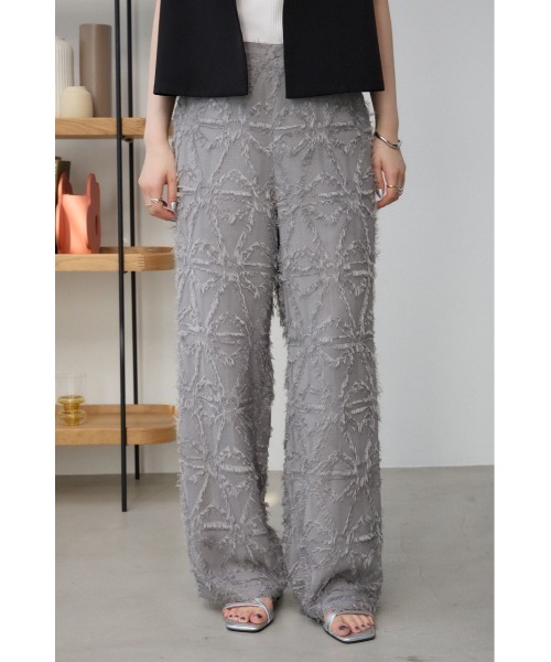 ■商品(デザイン)ポイント :オリジナルのジャガード素材を使用したワイドパンツです。 ■商品ディティール :表面感のあるトレンドのフリンジジャガード素材をワイドパンツに落とし込みました。 後ろウエストはゴム仕様になっており、リラックスして履いて頂けます。 ■スタイリング :単品着用はもちろん、同素材のワンピース(250HSM33-302D)と合わせたセットアップのスタイルもおすすめです。 ■透け感:なし ■光沢感: なし ■伸縮性: なし ■裏 地: あり ▼商品のお気に入り登録 お気に入りアイテムの値下げ・再入荷・在庫1点などの通知を受け取ることができます。 ▼ブランドのお気に入り登録 新商品や再入荷、セール、クーポン配布などお得な情報を受け取ることができます。