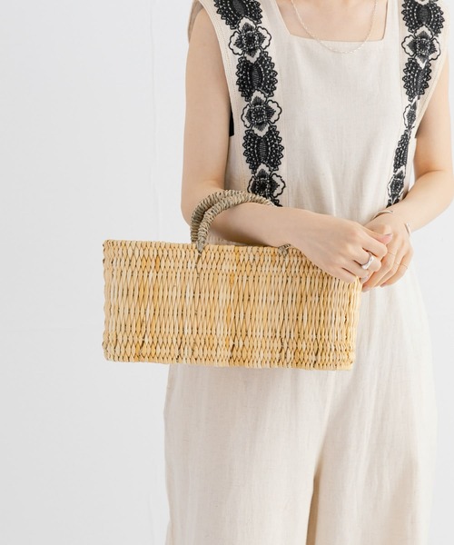 ツルツルしたストロー状の水草で編まれたかごバッグ。 密度高く編み込まれたナチュラルな雰囲気がシーズンムードを高めてくれるアイテム。 マチのあるデザインが収納力も抜群で、コーディネートアイテムとしてはデイリーにはもちろん、ちょっとしたお買い物やレジャーなど、様々なシーンで活躍します。 【2024 Spring/Summer】【24SS】 ※この商品は摩擦や、汗・雨などによる水濡れにより色、油落ちします。衣類や周囲のものに色移りする恐れがありますので、白色や淡色のものと組み合わせする際は製品のお取扱いには十分ご注意ください。 ※日差し、照明により色あせが生じます。保管の際は直射日光や強い照明の当たる場所はお避けください。 ※その他お取り扱いに関しましては、商品に付属のアテンションタグをご覧ください。 総重量 : 約455g ※商品画像は、光の当たり具合やパソコンなどの閲覧環境により、実際の色味と異なって見える場合がございます。予めご了承ください。 ※商品の色味の目安は、商品単体の画像をご参照ください。 ▼お気に入り登録のおすすめ▼ お気に入り登録商品は、マイページにて現在の価格情報や在庫状況の確認が可能です。 お買い物リストの管理に是非ご利用下さい。