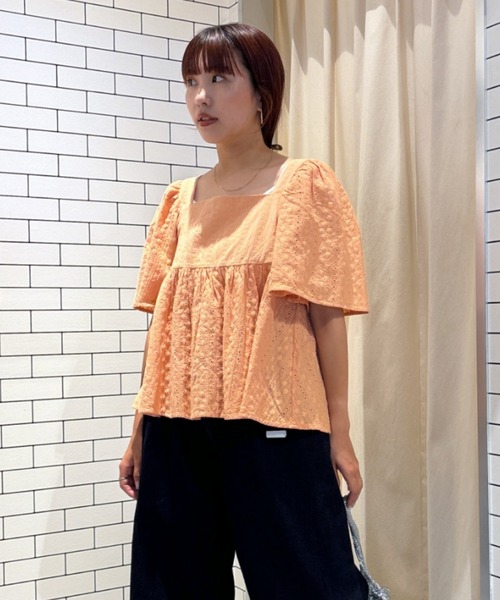 2種類のエンブロレースを組み合わせたブラウス。 スタイルアップ効果の胸下切替と、二の腕が隠れるフレアスリーブがポイント。後衿ぐりには共地テープのリボンを付け、スッキリとしたスクエアネックのアイテムです。 ■ポケット:なし ■裏地:なし ■透け感:ややあり ■伸縮性:なし ▼商品のお気に入り登録お気に入りアイテムの値下げ・再入荷・在庫1点などの通知を受け取ることができます。 ▼ブランドのお気に入り登録新作アイテムの入荷や人気アイテムの再入荷、タイムセールやクーポンなど、いち早くブランドのお得な情報を受け取ることができます。 SPRING & SUMMER ( 春服 / 夏服 ) ※こちらの商品は、RODEO CROWNS WIDE BOWL 独自の採寸方法となっています。本サイトのサイズガイドと採寸方法が異なる場合がありますのでご了承ください。