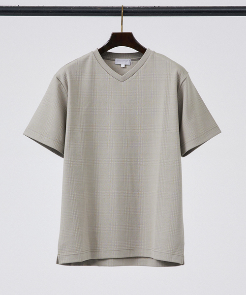 浅めのVネックでインナーでも1枚着でも◎ 【素材】 ポリエステル、ポリウレタン素材を使用し、さらりとした肌触りで、もっちり柔らかいのが特徴的。伸縮性があり、キックバックも効いているので軽やかな着心地を保ってくれます。 【デザイン】 生地に凹凸を出してチェック柄を表現したVネックTシャツ。一枚で着ても様になるデザインに仕上げています。 【コーディネート】 綺麗目カジュアルスタイルはもちろん、ジャケットのインナー使いなどでクリーンかつ洗練された印象に。ベーシックなシルエットなのでどんなボトムにもマッチしてくれます。 ホワイト モデル:H180 B93 W76 H94 着用サイズ:48 サックスブルー モデル:H180 B93 W76 H94 着用サイズ:48 ネイビー モデル:H180 B93 W76 H94 着用サイズ:48 ブラック モデル:H178 B82 W76 H88 着用サイズ:48 チャコールグレー モデル:H180 B93 W76 H94 着用サイズ:48 ********************** 透け感:なし 裏地:なし 伸縮性:あり 光沢感:ややあり 生地の厚さ:普通 **********************