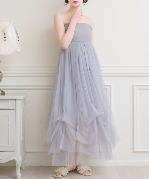 <チュールデザインのワンピースはこの春夏に大活躍の1枚>▼デザイントレンドのチュール素材をあしらったロングワンピース。つまみのあるチュールスカートは今年らしいワンポイントアレンジ◎肩紐は外すことができるので、ベアトップデザインで着て頂くことも可能です。ブルーはオンラインストア限定カラーなので、お早目のGetがおすすめ♪▼コーディネート1枚でコーデの完成するワンピース!トップスにトレンドのスポーツデザインを取り入れて、甘カジコーデもトレンドです◎------------------------------生地感:普通伸縮性:ある透け感:多少ある裏地:ある------------------------------▼ブランド紹介ems excite (エムズエキサイト)“more fun more cute”今をもっと楽しくもっと可愛くいたい女の子に向けたgirly cuteなブランド#チュール #ワンピース #チュールワンピース #キャミワンピース #ベアトップワンピース #デートコーデ #フレンチガーリー▼注意事項※撮影環境やモニター環境によって実際の商品とお色味が 多少異なってみえる場合がございます。品番:ES457122T001 / 品名:チュールベアOP