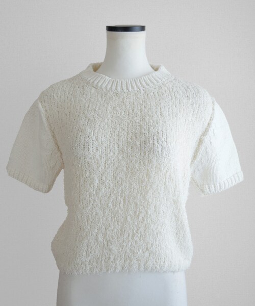 ◆アイテム詳細◆ コーデの主役になる1枚 肌触りの良い柔らかなカールヤーン素材とシンプルな編地の切替がポイント! 着心地が良くコットン・ナイロン素材なので今からの夏シーズンに向けてオススメのサマーニット。 一枚着るだけでおしゃれ見えさせてくれるアイテムです! ほどよいフィット感とコンパクトなクロップド丈で、様々なボトムともバランスよくコーディネートして頂けます。 ───────────────────────────── 【COLOR】ホワイト・ライム・ブラック 【SIZE】Fサイズ 平置き(㎝)着丈46 身幅43 肩幅40 袖丈23 裾幅35 【素材】本体 綿81% ナイロン19%