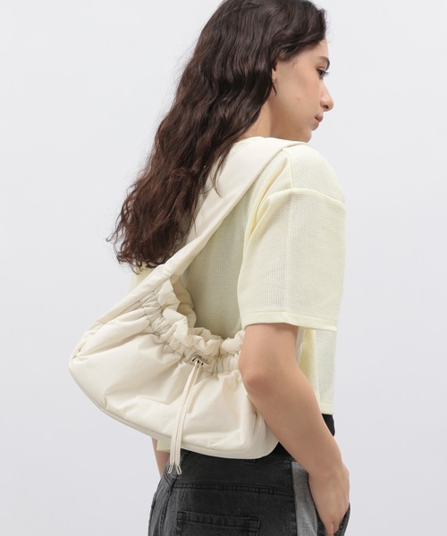 ギャザーデザインがポイントのハンドバッグ。パテットの軽い素材感で、デイリーにお使いいただけます。マチがあるので、コンパクトながらも収納力も◎上品にもカジュアルにも合わせやすいアイテムです。