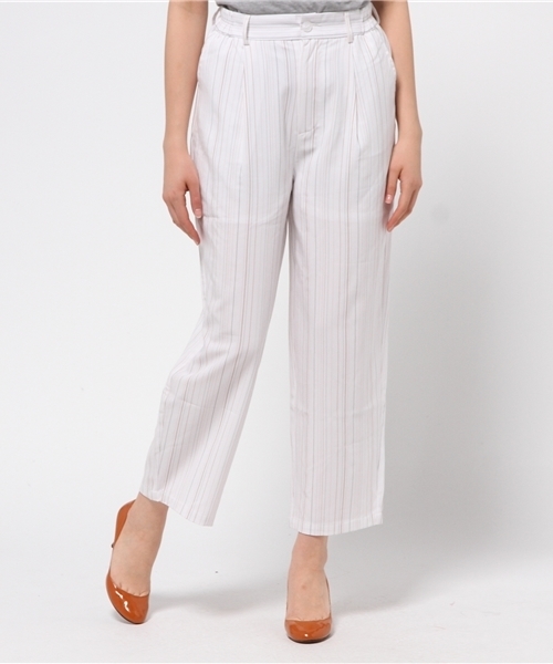 WHO'S WHO gallery(フーズフーギャラリー) ワイドシルエットをほのかなテーパードラインに仕上げることで、モードながらも女性らしく優しい雰囲気を演出したガウチョパンツです。ゴム入りの両サイドウエストが、すっきりとした腰周りとストレスフリーなフィット感を両立。レーヨン混素材のしなやかな風合いもきれいめな印象を与えます。