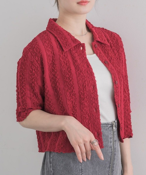 <しっかりした素材感で着心地抜群なジャガードカーデ> ▼デザイン しっかり表面感のついたジャガードカーディガン。 五分袖は春にちょうどいい袖丈で、袖口のメロウデザインも可愛いポイント! ポコポコした触り心地が癖になる、羽織っても可愛い、トップス使いもできる いろんな場面で活躍してくれる1枚です。 レッドの新色も仲間入りして、4色でのご用意です◎ ▼コーディネート ボトムを選ばないベーシックデザインのカットカーディガン。 羽織としてはもちろん、前ボタンを全て閉めて、トップスとして着用するのもおすすめです。 ブルーのカラーは鮮やかで、コーデに取り入れると、顔色をパッと明るくしてくれます。 ------------------------------ 生地感:普通 伸縮性:ある 透け感:なし 裏地:なし ----------------------------- ▼ブランド紹介 RETRO GIRL (レトロガール) 自分らしい“ベーシックアイテム”と 新しい自分の”トレンドアイテム”が 見つかる場所 今らしいファッションを楽しむ 女性のためのブランド #カーディガン #襟カット #ジャガードカット #春コーデ ▼注意事項 ※撮影環境やモニター環境によって実際の商品とお色味が多少異なってみえる場合がございます。 品番:RM441511T005 / 品名:5分袖ジャガードカーデ
