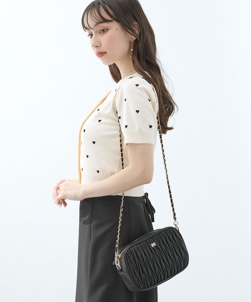 表面感のあるキルティングバッグはオンオフ問わずに大活躍。ほんのり丸みを帯びたフォルムがフェミニン。小振りながらもマチがあるので見た目以上に収納力があります。しなやかなフェイクレザーが上品な雰囲気。メタリックな細めのチェーンショルダーは取り外し可能です。合わせやすいベーシックなカラーがラインナップ。・A4サイズ不可・裏地あり・内ポケットあり・重量:約266g