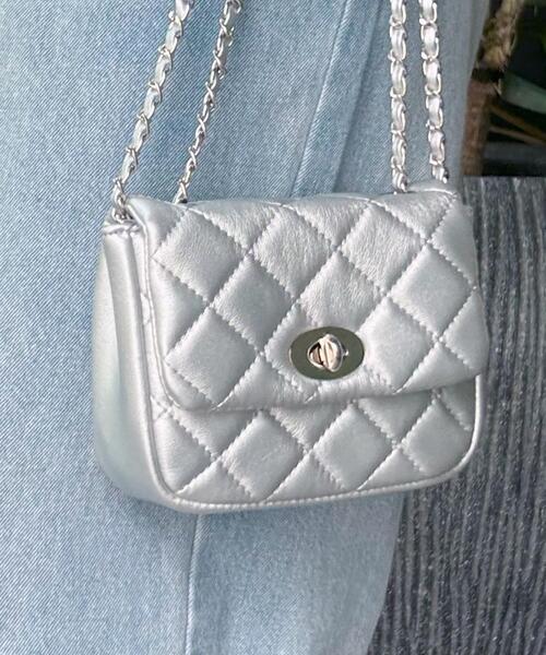 必要なものだけをコンパクトに持ち運べるミニサイズのショルダーバッグ。メタリックなチェーンとキルティングデザインで大人レディな雰囲気に。フラップタイプの開閉で中身が見えにくいのもポイント。マチがあるので小振りながらも見た目以上の収納力です。ベーシックなカラーはもちろん、コーディネイトのアクセントになるカラーもラインナップ。・A4サイズ不可・裏地あり・内ポケットあり・重量:約213g
