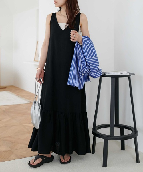 春夏にぴったりな楽ちんジャンパースカート 軽く涼しげなリネン素材で、これからの季節にぴったりな深Vジャンスカ。膝下からギャザーデザインを施し、動くたびにふわっと揺れるシルエットがより女性らしい仕上がりに。肩紐が垂れる様に長めに作っているので、後ろ姿まで抜かりなく可愛い一枚です。エクリュは透け感があるので、デニムとのレイヤードがおすすめです♪ *********************** 洗濯方法:手洗い可能 裏地:なし 透け感:エクリュのみあり 伸縮性:なし 光沢感:なし 生地の厚さ:やや薄い *********************** ※着用、お取り扱いは商品についておりますアテンションタグを必ずご確認ください。 ※ご覧のモニター環境や撮影環境により実際の商品と多少色味が異なって見える場合がございます。 【お気に入り登録がオススメ!】 ●商品のお気に入り登録 「在庫残りわずか」の通知や、「完売カラーの再入荷」、「セール」の通知を受けることができます。 ●ブランドのお気に入り登録 新商品や再入荷等、ブランドのお得な情報を受け取る事が出来ます。