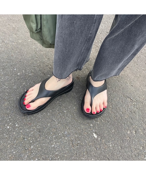 幅広いシーンで活躍するリカバリートングサンダルが登場! 軽量で今季トレンドの厚底デザインでクッション性があり履き心地も◎ ビーチやレジャーにも履け、ちらっと見える柄感もおしゃれのポイント! シンプルなデザインでコーディネートに合わせやすく、シーズンスタイルの足元のワードローブにおすすめのアイテムです。 ※こちらは箱なしになります。予めご了承ください。 ■カラー ブラック ■サイズ Mサイズ:24㎝ Lサイズ:25㎝ ■素材 合成樹脂