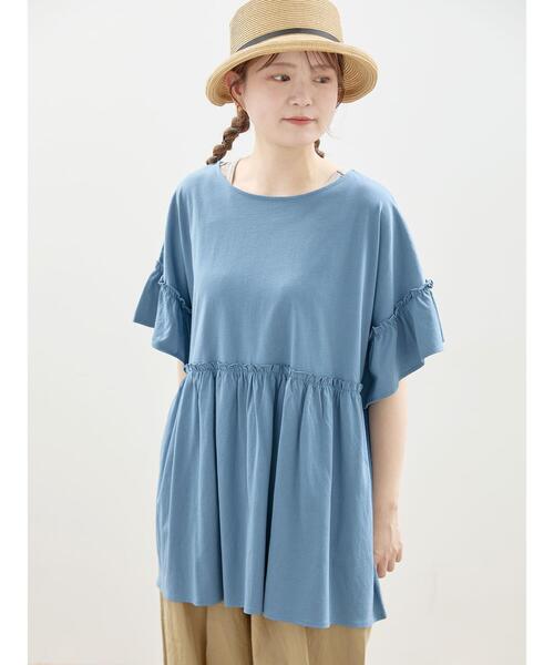 ------------------------------------------------------------ 心地よく、自分らしく。日々に寄りそう お気に入り 2024 SUMMER 風を感じたい季節に。ナチュラルな可愛さと、心地よさとともに・・・ 本格的な夏の訪れはもうすぐそこに。 お出かけにも、おうちカフェでのんびり過ごすにも、今がまさにちょうどいい季節です。 このタイミングに手に入れたいのは日々袖を通したくなる、ナチュラルな可愛さを宿す服。 夏まで見据えた、賢い選択をしておきたい。 お気に入りのデザインだけでなく、心地よさも叶えられたら・・・ とっておきのアイテムが約束してくれるのは夏じゅう笑顔あふれる毎日です。 ------------------------------------------------------------ たっぷりのフリルが可愛いブラウスみたいなカットTシャツ。 ボリュームのあるふんわりとしたフリルが華やかさもプラス。 気になるボディラインを優しくぼかしてくれます。 綿100%素材で肌触りも心地よく、デイリーユースにも活躍してくれるアイテムです。