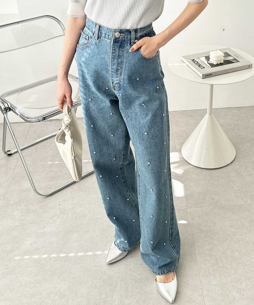 キラっとしたラインストーンがアクセント! 綺麗なシルエットが魅力のストレートデニムパンツ 〇華やかなのに主張しずぎないラインストーン付デザイン 〇ハイウエスト&美脚見えするストレートシルエット 〇ほどよい加工感で、キレイめアイテムとも好相性! 〇オールシーズン活躍 ■デザイン フロントにラインストーンを散りばめた華やかなデニムパンツ。 ハイウエストのストレートシルエットで腰回りをすっきり見せ、 美脚&脚長見せしてくれる1本です。 ほどよい色落ち感で、カジュアルスタイルはもちろん、 キレイめトップスともマッチしてくれます。 ■素材 ロングシーズン活躍する、ほどよい厚みのデニム生地 …………………… 透け感:なし 厚さ:普通 伸縮性:なし 裏地:なし 洗濯方法:手洗い …………………… ■コーディネート 存在感のあるアイテムなので、シンプルなニットやカットソーと合わせるだけで◎ くせのないストレートシルエットなので、様々なサイズ感や丈感のトップスと合わせやすい! トップスに甘めなテイストのブラウスやタイトなデザインを合わせて女性らしいスタイリングにするのオススメです。 -------------------------------------------------------------- ※サイズ寸法は実際の寸法と多少の誤差がある場合が ございます。 ※ご覧いただいているPC/WEB環境や撮影環境により、 多少色味が異なって見える場合がございます。 【お買い物をよりお楽しみいただく為に】 ▼商品のお気に入り登録をおすすめします♪ 『♡をクリック!』 完売カラーの再入荷やラスト1点の追加、 セールの際の通知を受ける事ができます。 ブランドのお気に入り登録もご一緒にお願い致します。 --------------------------------------------------------------