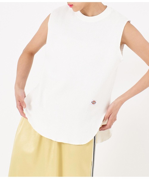 Dickies ANAP LIMITED ITEMS【Dickies】別注アイテム&セレクトアイテムが今シーズンも登場!1枚でも様になるワッフルノースリーブトップス。●ストレスフリーで着こなせるソフトな素材感です。●フロントにはボディー同色の刺繍がさりげなく入り、シンプルだからこそコーディネートに取り入れやすいデザインです。●ワイドパンツやフレアなシルエットのボトムスなどに合わせてリラクシーなムードで着るのもおすすめです。※ストレッチあり※裏地なし※裾切りっぱなし※生地のデザイン上、実際の商品と画像とで柄の配置が異なる場合がございます。予めご了承ください。※商品のお取扱いに関しましては、商品に付属のアテンションカード、洗濯ネームをご覧ください。※モデル着用画像は光の当たり具合で色味が違って見える場合がございます。※商品の色味の目安は、色見本画像をご参照ください。【お買いものをお楽しみいただく為に!】▼商品のお気に入り登録完売カラーの再入荷通知や、ラスト1点の通知、セールの通知も受け取ることができます。▼ブランドのお気に入り登録新商品や再入荷など、いち早くブランドのお得な情報を受け取ることができます。