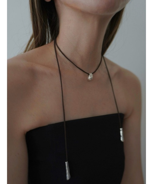 [大変ご好評につき、再受注開始致しました!!] ハードにならない深みのあるダークブラウンの細く華奢でハリのある長い紐に、コロンとした雫型のニュアンスモチーフをポイントに 日々のスタイリングに合わせてお好みで付け方を変えて、主張をしすぎずスタイリングのアクセントとして何パターンもお楽しみ頂けるロングタイ。 トップのモチーフは、安定感を保つ為に裏面はフラットな仕様に。 ボリュームニットやジャケットとの相性も抜群なので秋冬にもオススメです‼ ※こちらの商品の金具パーツにはSilver 925 のプレーティングを施しています。 Lynn.のアクセサリーは、すべてステンレスや合金の上にsilver925や14金のプレーティングを施し、更に透明のコーティングをしております。その為軽く拭き取るくらいのイージーケアで済み、silver925や14金のもつお色味や輝きをお楽しみ頂けるのも特徴です。 ただコーティングは永久的なものではないので、時間が経つにつれて汚れてくる場合があります、その場合は柔らかい布などで優しくお拭き取りください。 ※高温多湿の環境は紐の劣化や色移り、本体並びに金具の変色の原因になりますのでご注意ください。 ※本品の紐はフェイクスエードを使用しております。強く引っ張ったり、引っ掛けたりすると破損の原因となりますのでご注意ください。 ■サイズ : FREE ■付属品 【Lynn.】ロゴ入り巾着(13cm x 13cm)
