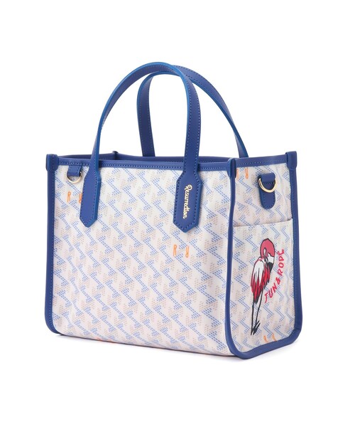 サイドのフラミンゴペイントが目を惹く、JUN&ROPE'オリジナルカートバッグ。 どんなシーンにも対応できる容量の大きさが人気の『ラニウス スクエアミニ』に、職人が一つ一つ手書きでJUN&ROPE'のアイコンであるフラミンゴのペイントを施しました。 ■ 男女問わず気兼ねなく使える新定番ラウンドバッグ 男女バランスよく使える、丸さを極力抑えたスクエア型のトートバッグ。 ハンドルも短めのものを採用し男性でも持ちやすい仕様に。 ひじ掛けできる長さを確保しているので、女性も使いやすい仕様にこだわっています。 取り外し可能なショルダーストラップ付。 ■ 整理整頓に便利なポケットが4ヵ所 サイズはペットボトルを倒してすっぽり入る横幅に広めのマチ。 タオル、日焼け止め、スペアボール、スマホ、スコアカードなど、必需品がしっかり入ってスマートな見た目。 出し入れしやすい、両サイド2ヵ所のポケットと、内側にはファスナー付きと大き目のフリーポケット付きで収納力は抜群。 バッグ上部の開け口にはファスナーも付いているのでカラス対策もばっちりです。 ■スペック サイズ:横幅 上部27cm 、下部27.5cm x 高さ22cm マチ 上部13.5cm 、下部15cm x ハンドル高さ11.5cm 容量:約8L 素材:本体 PVC、ハンドル 牛革 ■カラー 海をイメージしたブルーとホワイトの配色の「オーシャンホワイト」 <Resurrection(レザレクション)> レザレクション は時代や流行にとらわれない名品のもつ美しさや、品格といったものをアレンジし ゴルフアイテムとして「蘇らせる」ことをコンセプトとしています。 街からゴルフ場へ、ゴルフ場から街へ帰ってきた時にも、違和感無く街に馴染む、上品なアイテムを提案致します。 フランスの老舗バッグブランドにて日本人初のペインターとして活躍した山崎氏をはじめ、熟練した職人技をもつスペシャリストによって、丁寧な手作業で施されるオリジナルペイントが人気。 ※実際の商品はお客様のお使いの端末や閲覧環境により、写真と実物の色味や質感が多少異なって見える場合がございます。予めご了承ください。 JUN&ROPE’(ジュンアンドロペ) 2つのゴルフコース「ジュンクラシックカントリークラブ」「ロペ倶楽部」を有するJUNがお届けするゴルフウェアブランド。